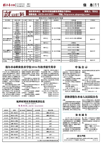 格尔木市职业技术学校2014年秋季中职招收专业: