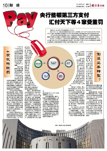 央行整顿第三方支付 汇付天下等4家受重罚