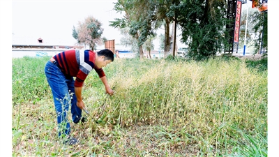 9月6日,农垦集团河西农工商公司种植户正在收割油菜。眼下,正值油菜籽收获的季节。连日来,我市各乡镇油菜种植户趁着晴好天气,纷纷抢收油菜,确保颗粒归仓。记者 祝贵福 摄