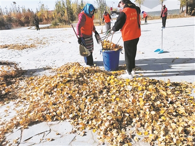 为减轻保洁人员的负担,美化村容村貌,近日,唐古拉山镇妇联“巾帼志愿队”在长江源村开展了“清扫落叶·美化家园”志愿服务活动。