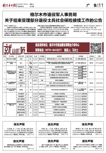 格尔木市退役军人事务局 关于结束受理部分退役士兵社会保险接续工作的公告