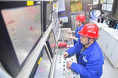 1月26日,中铁十四局的工人在长沙市湘雅路过江通道北线隧道的控制室作业。