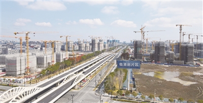 2月10日在中国(上海)自由贸易试验区临港新片区拍摄的住宅区建设现场(无人机照片)。 新华社记者 方喆 摄