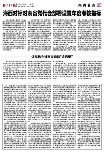 海西对标对表省党代会部署设置年度考核指标