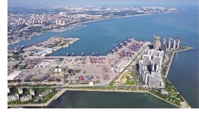 7月29日拍摄的海口秀英港,港口将进行升级改造,这是海南自由贸易港全岛封关运作第一批建设项目之一(无人机照片)。