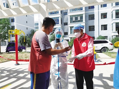 全州各级党组织主动作为,坚持以党建为引领,积极发挥基层党组织战斗堡垒作用,坚持联防联控、群防群治,广泛发动干部群众投身防疫一线,为打赢疫情防控阻击战贡献力量。在各级党组织的强力动员下,一群群身穿“红马甲”的志愿者冲锋在前,用“志愿红”扛起抗疫担当。截至目前,德令哈市100个基层团组织、52支疫情防控青年突击队参与到全市7个乡镇街道、60个村(社区)的防控值守、查验双码、核酸检测、入户排查、防疫消杀等志愿服务中。乌兰县茶卡镇组织志愿者下沉至9个村(社区),走家入户宣传疫情防控知识,引导群众科学防疫,提高群众自主防疫意识,截至目前,累计组织志愿者120余名,共排查景区、游客集散中心、驻镇企事业单位、各村(社区)、餐饮、商店、超市、宾馆、酒店等重点场所700余处,发现问题并整改49个,走访群众1000余户,发放宣传手册2000余份。