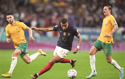 当日,在卡塔尔多哈贾努布球场进行的2022卡塔尔世界杯足球赛D组比赛中,法国队对阵澳大利亚队。