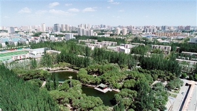 图为绿意盎然的格尔木城区一角。资料图片