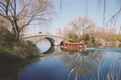 2月14日,山东省济南市天下第一泉风景区,游客在大明湖游览。