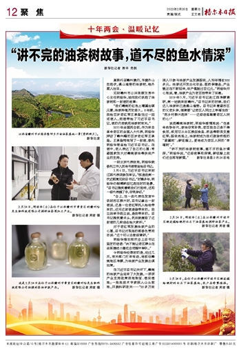 “我们赣南的红色土壤富含硒元素,油茶种植历史悠久。8年前,我给百岁老红军王承登当过一回送信人,把信带给了习近平总书记,信的内容就和油茶树有关。”