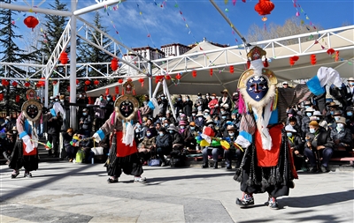 2月25日,藏戏经典剧目《卓娃桑姆》在拉萨市宗角禄康文化广场演出。
