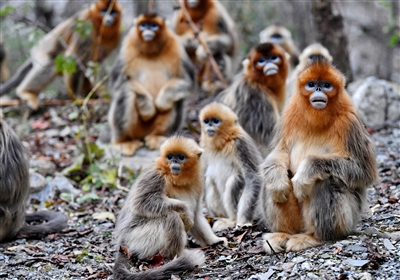 11月11日在四川白河国家级自然保护区拍摄的野生川金丝猴。
