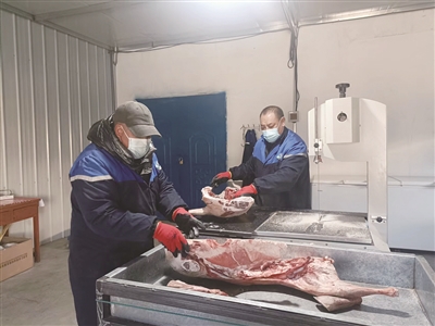 在格尔木岗尖蕃巴商贸有限公司,记者看到冷库里早早储备好了大量的本地草膘牛羊肉,工人们正在把经过检验检疫的牛羊肉进行分割、称重、打包。该公司负责人介绍,公司目前有自己的源头牧场,实行自产自销运营模式,经过7年的经营,已经有了非常稳定的客源。截至目前,该公司备了30吨牛肉和500只羊,营业额达到了250余万元。