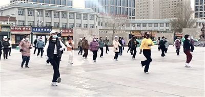 近日,记者在体育场看到,虽已进入寒冬,但仍阻挡不了市民锻炼身体的热情,伴着音乐的节奏,大家以跳广场舞的形式进行锻炼展示健康之美。