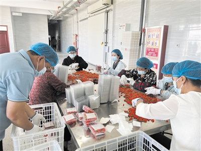 活动现场,刚从田间采摘的新鲜枸杞,颗颗饱满、色泽鲜艳。工作人员正有条不紊地进行分拣和装盒,确保每一颗枸杞都能新鲜、安全地抵达消费者手中。