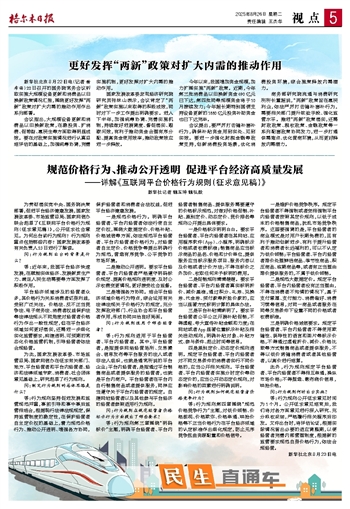 规范价格行为、推动公开透明 促进平台经济高质量发展
