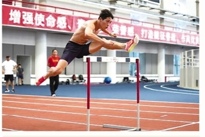 8月29日,中国男子110米栏选手刘俊茜在训练中。