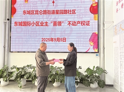 本报讯(记者 冯伟)近日,东城国际小区业主刘建初拿到了崭新的不动产权证书。这张证书的背后,是小区业主多年的奔波与期盼,是街道社区为民办实事的具体行动。
