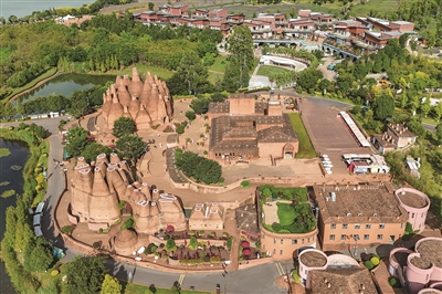 9月8日,游客在东风韵小镇参观游览(无人机照片)。