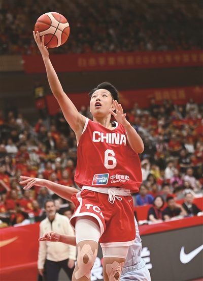 9月17日,中国队球员冉珂嘉在比赛中上篮。新华社记者 李一博 摄