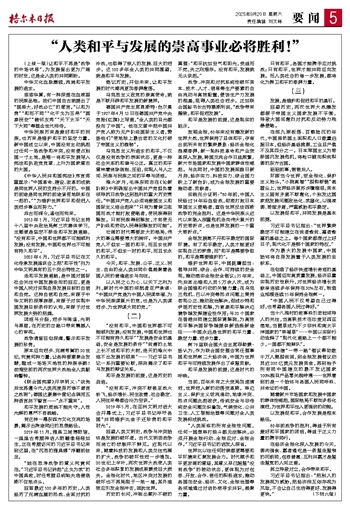 “人类和平与发展的崇高事业必将胜利!”