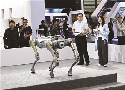 9月19日,人们在2025中国国际消费电子博览会上观看机器狗演示。