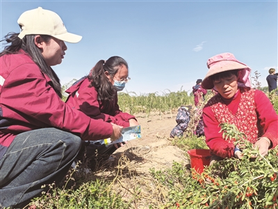 近日,市疾控中心工作人员深入河西农场枸杞种植基地,以流动讲解、设展板、发手册礼品等形式,为采摘工科普健康知识。