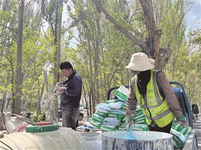 自入秋以来,我市开展秋冬树木养护专项行动,重点推进乔木涂白、绿化灌溉、绿篱修剪、病虫害防治、落叶清理五项工作。截至目前,已完成城区60%行道树的养护作业。这项工作不仅能有效减少树木越冬损伤、提升存活率,更是保障城市生态环境稳定的重要举措。“公司接管养护工作两年来,持续做好城市树木日常养护,包括打草、浇水、绿篱修剪、树木修剪等。现在做足养护工作,来年树木才能更早发芽、长势更好。”韩木海麦说。