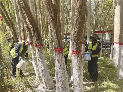 在市区主干道八一西路,园林工人正有条不紊地开展行道树涂白工作。作业现场,工人先仔细清理树干表面杂物,再按照统一高度,将成品涂白剂均匀涂抹在树干底部。“涂白树木包括全市所有主干道、次干道、背街小巷及公园广场的乔木。做这项工作主要起到三个作用:一是防治病虫害,二是在冬季为树木保暖保湿,三是提升行道树美观度。目前涂白工作有序推进,预计10月中旬可全部完成。”青海国盛园林绿化有限公司现场负责人韩木海麦介绍。