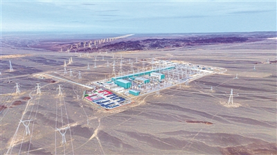 在新疆哈密地区拍摄的哈密±800千伏巴里坤换流站(4月17日摄,无人机照片)。