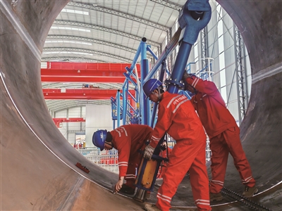 本报讯(记者 赵倩 杨学超)9月28日,随着首节大直径引水压力钢管成功下线,标志着青海格尔木南山口抽水蓄能电站压力钢管加工厂正式投入运营,全球3500米以上超高海拔地区装机容量最大、调节库容最大的抽水蓄能电站建设加速推进。