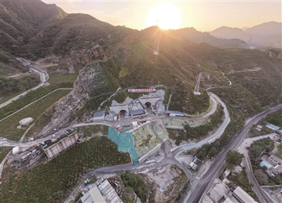9月29日拍摄的北京108新线高速公路房山段黑龙关隧道施工现场(无人机照片)。