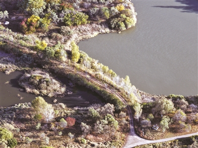这是10月7日拍摄的哈尔滨太阳岛国家湿地公园景色(无人机照片)。