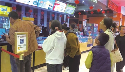 今年国庆档影片类型丰富多元,涵盖了战争、喜剧、动作、动画等多种题材,满足了不同观众的需求,多部国产大片更以精彩剧情与精良制作圈粉无数。假期里,我市各大影院人气爆棚,售票处、取票机前均排起长队,家长带娃、年轻人结伴观影成为常态。图为市民在影院售票处有序排队购票的场景。记者 管晓静 摄