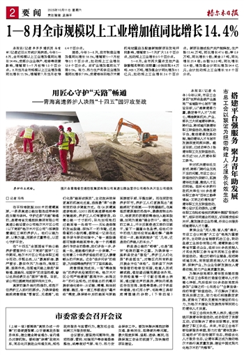 1—8月全市规模以上工业增加值同比增长14.4%