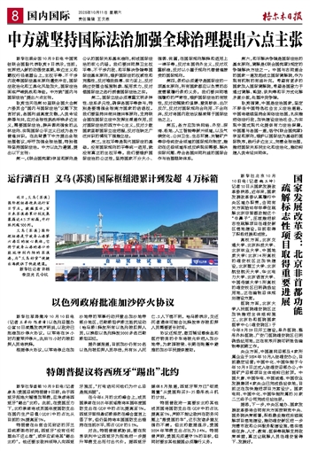 中方就坚持国际法治加强全球治理提出六点主张