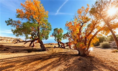 保护区内,胡杨以千姿百态扎根戈壁:有的树干虬劲如盘龙,有的枝叶舒展似金伞,阳光透过叶片在沙地上投下斑驳光影,风过时满林“金叶”簌簌作响,与远处昆仑雪山的银白、近处梭梭灌丛的深绿相映,层次分明、壮阔夺目。作为高原特有的珍稀植被,这里的胡杨不仅是“大漠英雄树”的象征,更因高海拔生长环境,形成了“胡杨映雪山、金林衬戈壁”的独特景观,每一处都是自然与生态交织的美景。