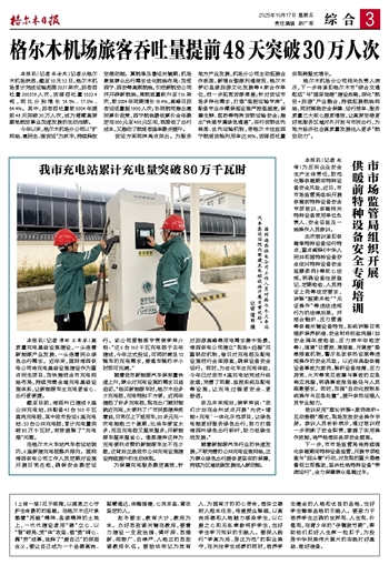 在格尔木火车站汽车客运站院内,6座新建充电桩整齐排列。国网海西供电公司工作人员定期对设施开展日常巡检,确保安全稳定运行。该公司营销部专责侯学坤介绍:“这6台160千瓦充电桩于去年建成,今年正式投运,可同时满足12辆车的充电需求,普通车辆约半小时即可充满。”