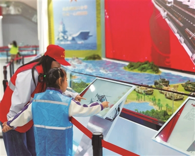 在展馆讲解员的引导下,孩子们有序参观了各个展区。活动通过国产先进装备模型的直观呈现、国防历史故事的生动讲述,搭配实物观摩、图文解读、多媒体演示等多种形式,让孩子们系统了解我国国防建设的光辉历程与人民军队的发展成就,深刻体会国防安全作为国家繁荣发展基石的重要意义。