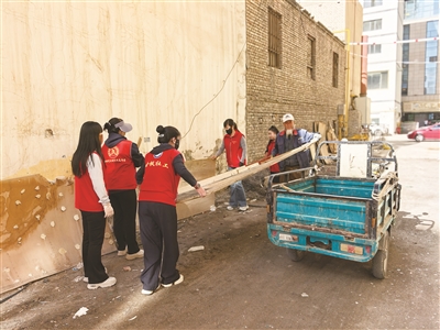 近日,金峰路街道园林社区志愿者深入无物管小区开展环境卫生专项清理整治行动,重点对小区后院堆积的废旧家具、生活垃圾等进行集中清理,有效改善了小区的环境。记者 段亚慧 摄