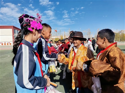 本报讯(记者 赵倩 沙磊)10月22日,由市委统战部、团市委、市教育局、市少工委联合举办的2025年格尔木市“十一三”建队日系列活动之14校手拉手“石榴籽”文化交流节在长江源民族学校举行。这场融合爱国主义教育、民族团结实践与文化互动体验的少年盛会,以生动形式展现了各民族少年团结向上的精神风貌。