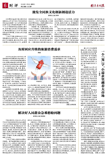中国式现代化,民生为大。《中共中央关于制定国民经济和社会发展第十五个五年规划的建议》对“加大保障和改善民生力度,扎实推进全体人民共同富裕”作出部署,明确要求“加强普惠性、基础性、兜底性民生建设,解决好人民群众急难愁盼问题”。相关部署凸显以人民为中心的发展思想,将进一步增强人民群众的获得感、幸福感、安全感。