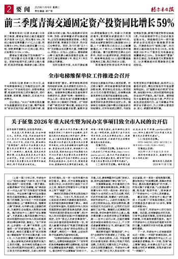 前三季度青海交通固定资产投资同比增长59%