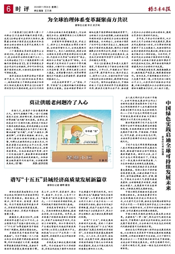 面向“十五五”,县域发展迎来新的历史机遇。党的二十届四中全会审议通过的“十五五”规划建议提出“发展各具特色的县域经济”,为县域经济高质量发展指明方向。以人为本、多元协同、因地制宜、在发展中创新,蓬勃发展的县域经济描绘中国之治壮丽画卷的浓墨重彩,更成为中国式现代化的重要支撑和活力之源。