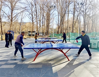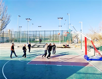 午后暖阳中,公园更显热闹。杨树巷“口袋公园”内,马萍正带着孩子在攀岩墙旁活动,她说:“以前要走15分钟去儿童公园,现在楼下就有锻炼的地方,大人孩子都能玩。”昆仑公园的运动场上,年轻人组队打篮球,老人们在树荫下打太极,不同年龄的市民,都能在这里找到适合自己的运动方式。