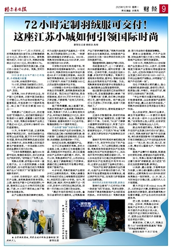 72小时定制羽绒服可交付! 这座江苏小城如何引领国际时尚