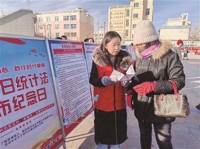 活动现场采取“知识普及、现场咨询、宣传展示”相结合的方式,为统计部门与公众搭建起互动交流的平台。工作人员重点解读了新修改的《中华人民共和国统计法》和《青海省统计条例》等法律法规,帮助市民增强依法统计观念;同时围绕统计工作流程、1%人口抽样调查、全国农业普查等专题,解答群众在统计政策与指标体系方面的疑问。现场还通过布置展板、悬挂标语、发放统计知识手册及宣传品等多种形式,拓宽宣传覆盖面,提升活动影响力。