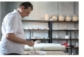 古朴的中式家具、孔子画像、水墨山水画……工作室中随处可见的中国元素,足以呈现豪梅对中国文化的喜爱。“我在书中学习中国画,齐白石等大家都是我的‘老师’。”不仅如此,他将产自家乡巴塞罗那的白底黑纹陶瓷纹饰,以青花工艺绘制,创作出了许多中西艺术相结合的陶瓷产品,每年上新的“生肖系列”主题茶杯尤为畅销。