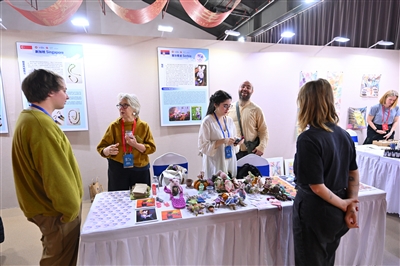12月12日,国外参展代表在海上丝绸之路非物质文化遗产展演活动上交流互动。