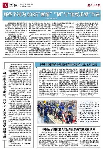 新华社杭州12月18日电(记者 丁文娴 许仕豪)2025年世界羽联世界巡回赛总决赛18日继续在杭州进行小组赛较量,中国队石宇奇、王祉怡等选手取得两连胜,提前晋级半决赛。